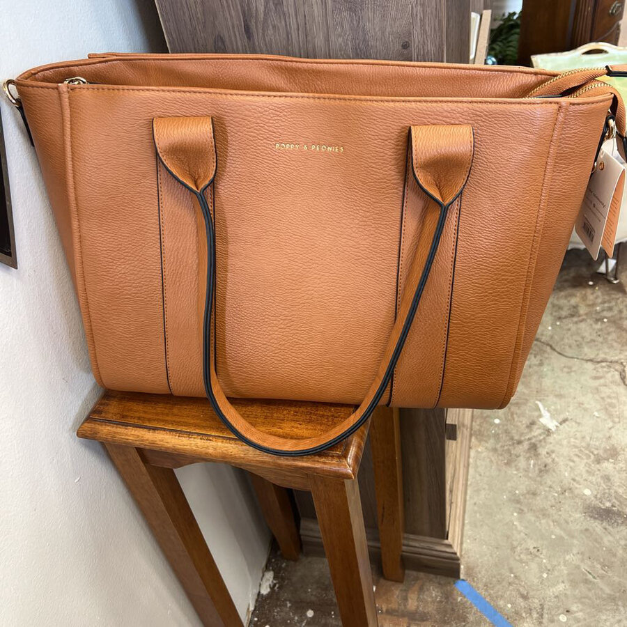 Poppy & Peonies Tan Vegan Leather Tote - $38.75