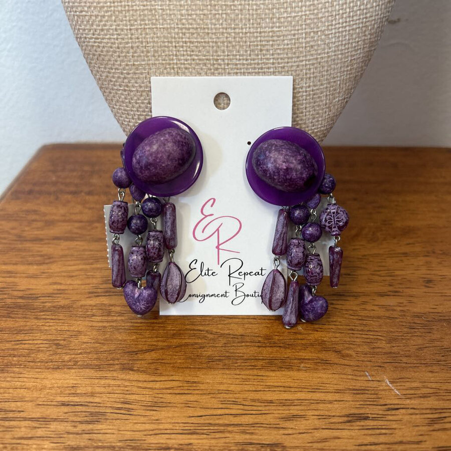 Purple dangle earrings Clip - $12.25