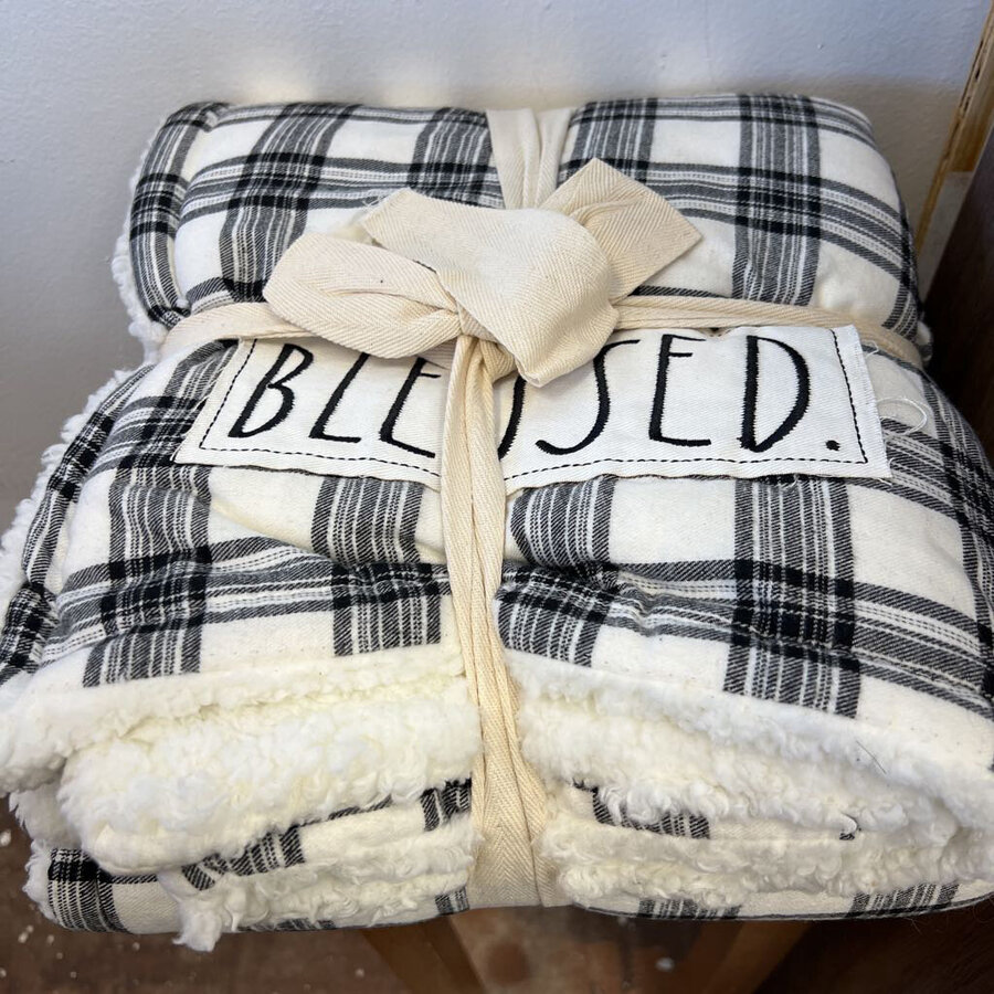 Rae Dunn Black/Cream Check Throw NEW - $22.25