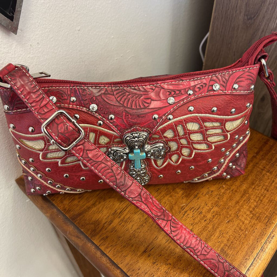 Red Tooled Vegan Leather with Cross - $20.25