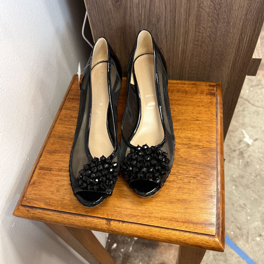 Ron White 9M Black Sheer Heels with Beads - $30.25
