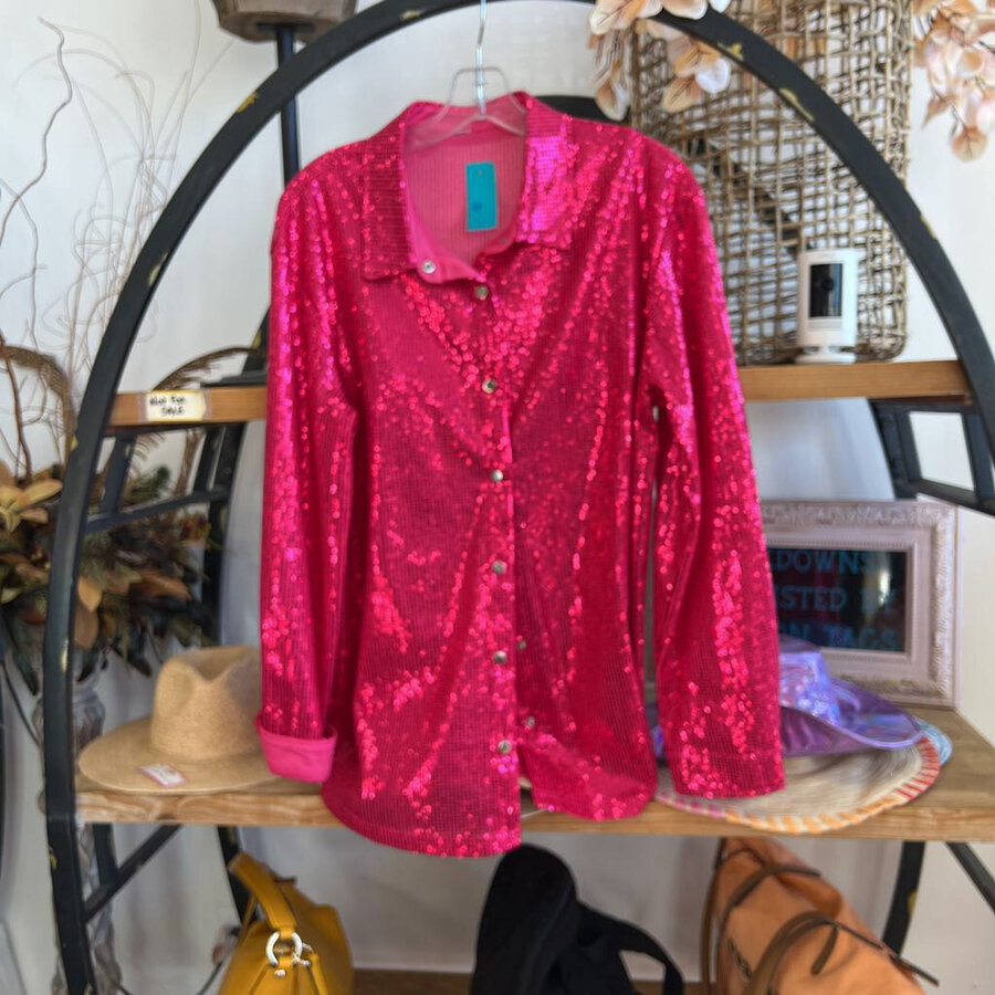 Sequin Medium Hot Pink L/S Tunic - $18.25