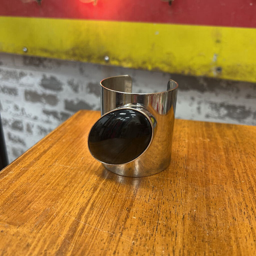 Silver Cuff Bracelet with Onyx - $30.25