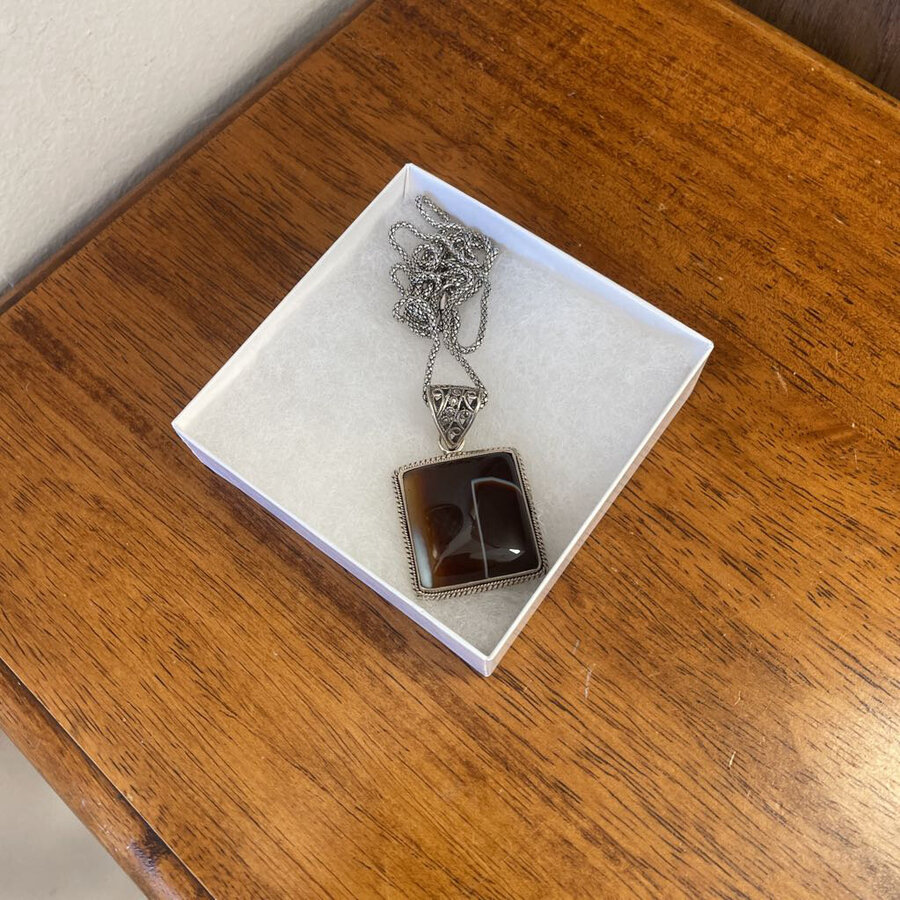 Smokey Quartz Sterling Silver Pendant on Silver Necklace - $115.25