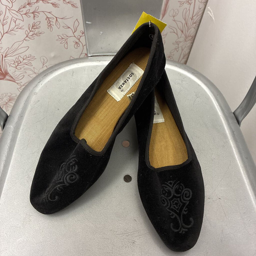 Sostanza 6M Black Velvet Embroidered Flats - $18.25