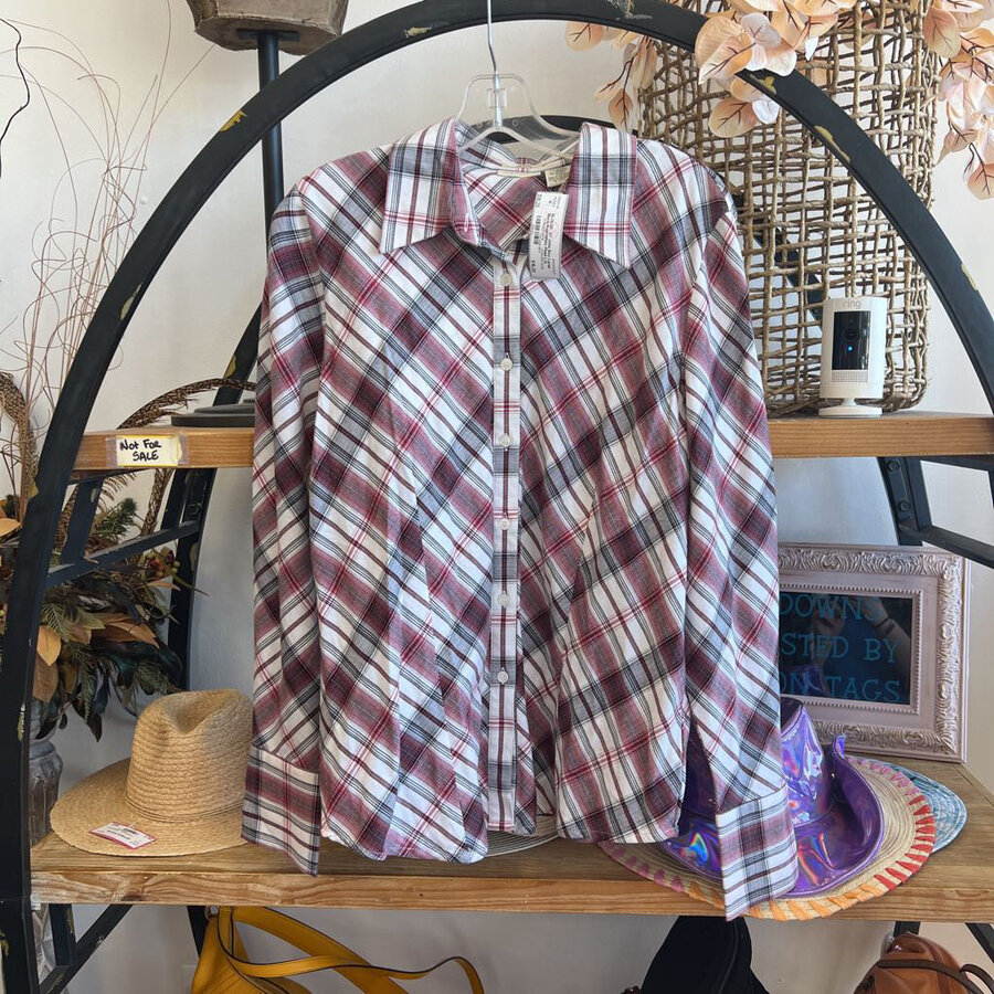 ST John Bay Large Black/Red/White Plaid L/S - $16.25