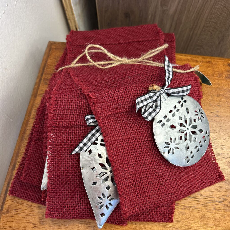 Table Utensil Holders Christmas Ornaments on them Burgundy Set of 8 - $20.25