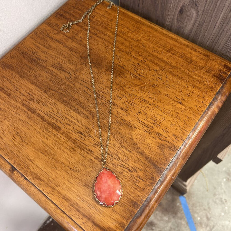 Teardrop Pendant rhodochrosite Gemstone on Gold Necklace - $16.25