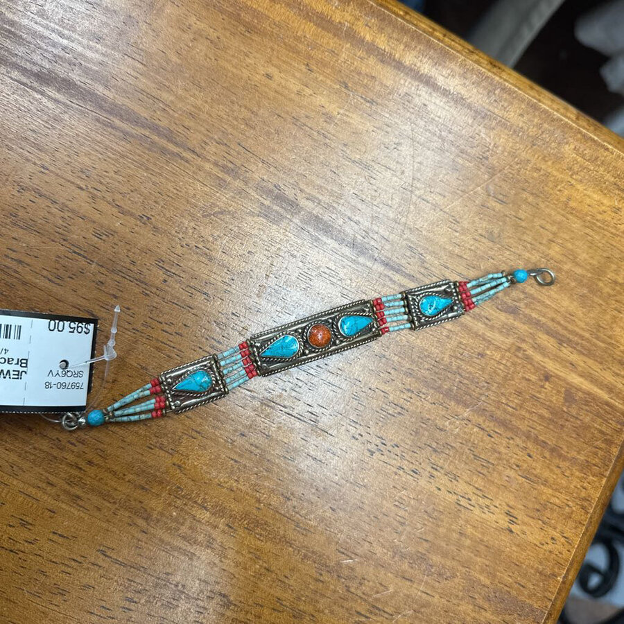 Tibetan Style Bracelet Turquoise on Sterling Silver 925 - $95.00