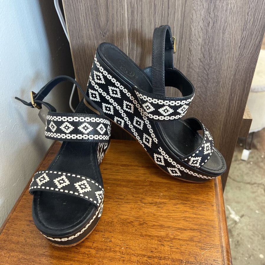 Tory Burch Reena Wedge Black/Cream 8M - $125.25