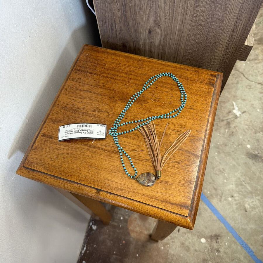 Turquoise Brown with Turquise Bead Necklace - $20.25