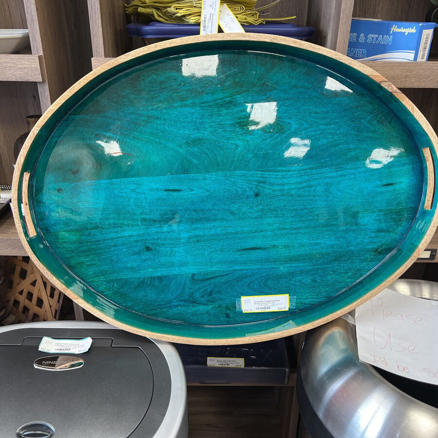 Turquoise Lacquered Oval Wood Tray 27.5 x 20 - $24.75