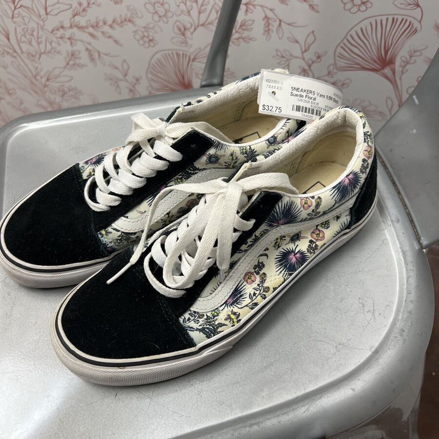 Vans 8.5M Black Suede Floral - $32.75