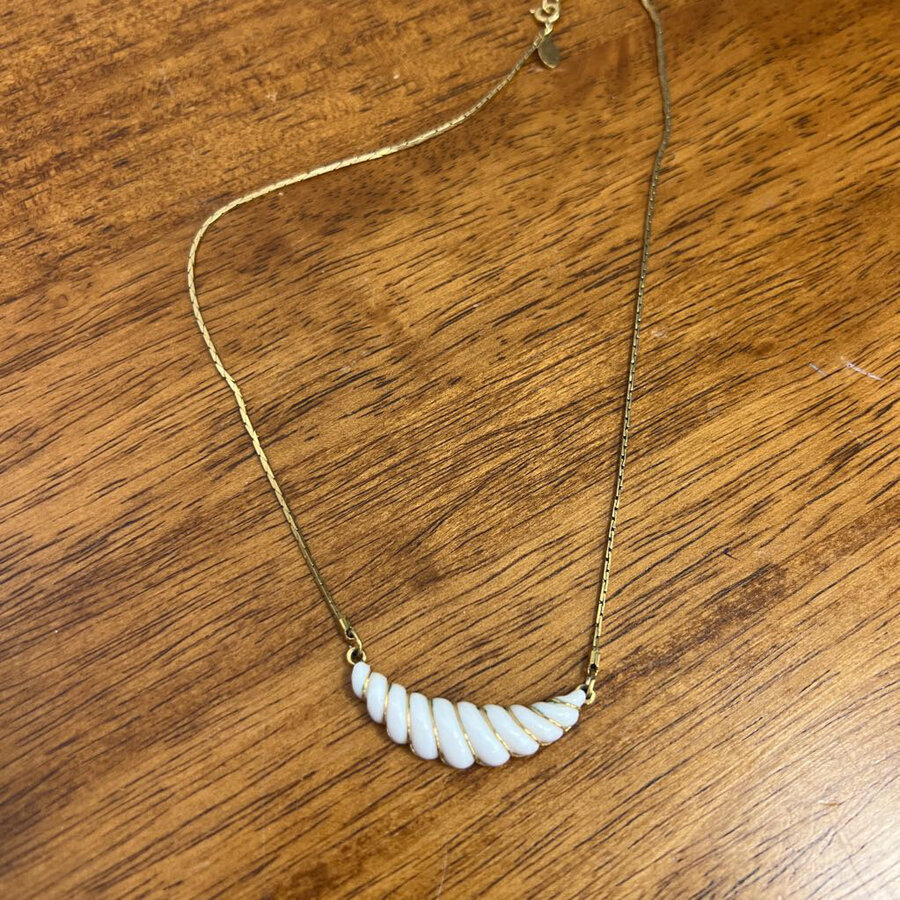 Vintage Avon Gold Necklace with White Pendant - $20.25