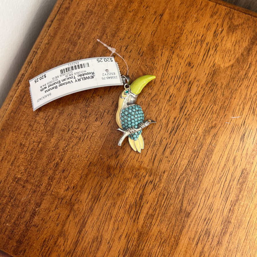 Vintage Banana Republic Toucan Enamel with Stones - $20.25