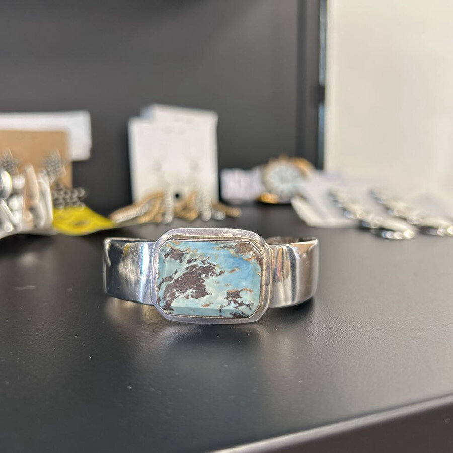 Vintage Cuff Bracelet SS/925 with Blue Fire Stone - $72.75