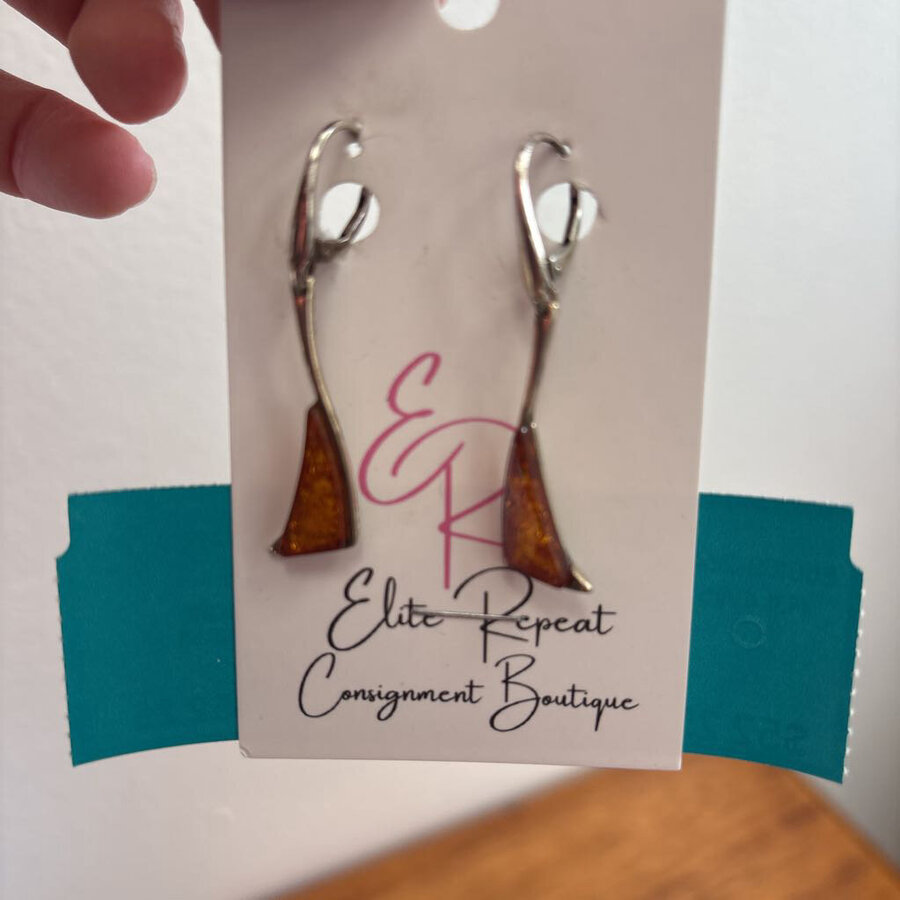 Vintage SS 925 Cognac Baltic Amber Dangle Earrings - $52.25