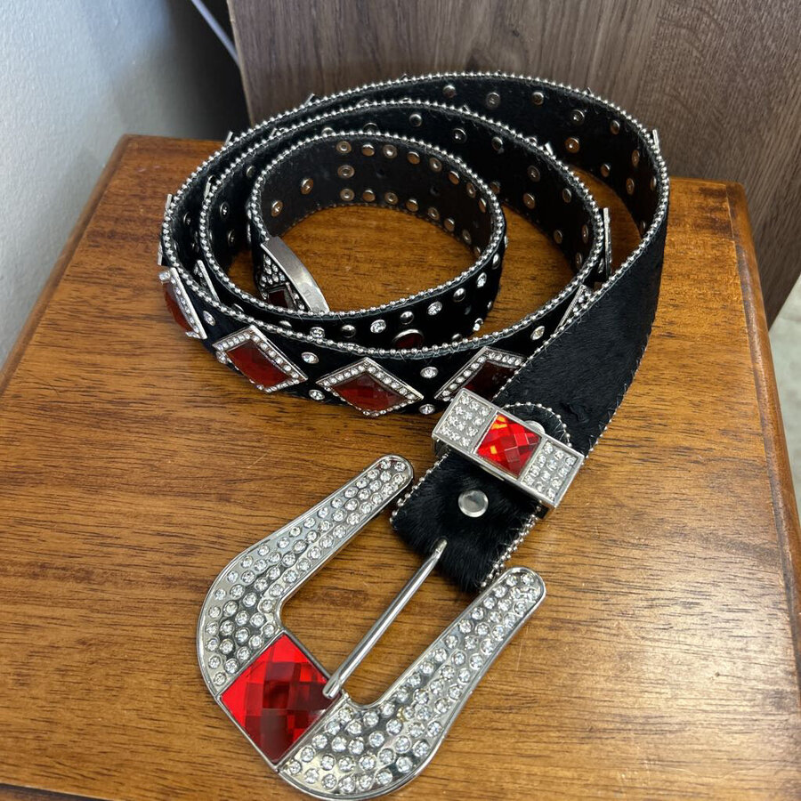 WB Atlas Western Leather Belt with Bling Red/Black Hide XL - $42.25