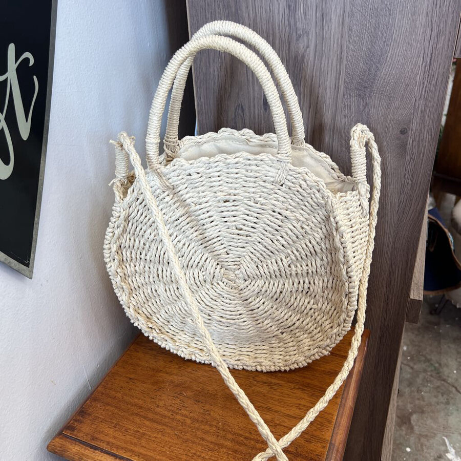 Woven Cream Handbag Round - $12.00
