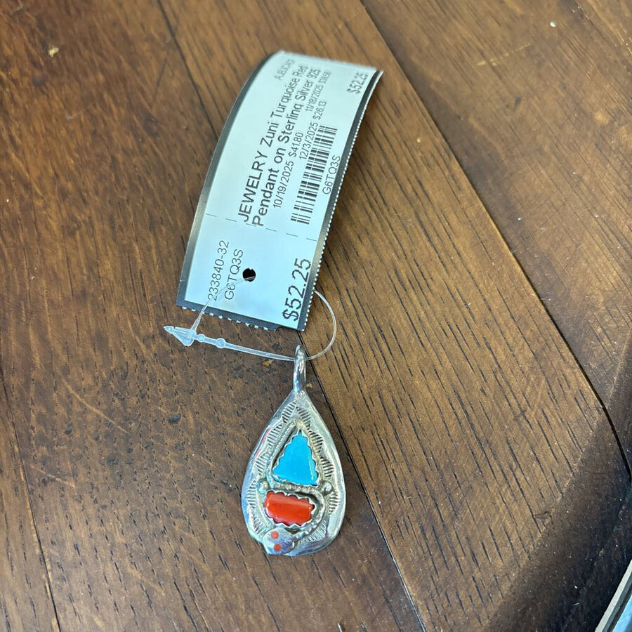 Zuni Turquoise Red Pendant on Sterling Silver 925 - $52.25